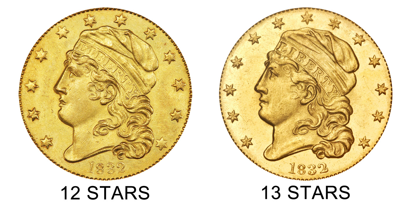 • Obverse: Capped Bust Liberty with 12 stars and “1832” date.